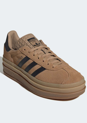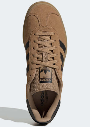The go-to classic, adidas Gazelle shoes transcend it all: trend, age, personality type and most of all, time. Introduced in 1996, they're still one of the most-loved designs from adidas. This version is made with materials and details true to the era they were born — think premium suede, metallic-gold branding and the signature T-toe. A triple-stacked gum outsole gives it a boost, along with a lace jewel detail made of colorful pearls and a metallic-gold pin.