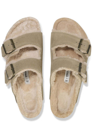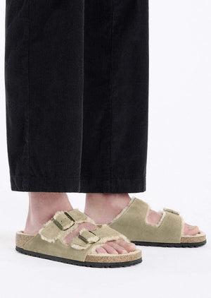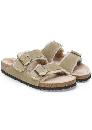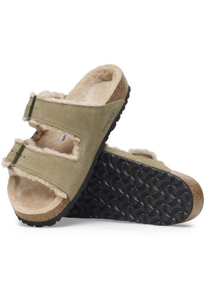 The bolder, the better! This is a wonderfully comfy version of the classic BIRKENSTOCK Arizona model with shearling footbed lining and straps lined with lambskin. The sandal can be individually adjusted to the wearer’s feet using the two metal pin buckles in a vintage look. This ensures an excellent fit and firm grip. The comfort level is boosted by the flexible EVA outsole with signature BIRKENSTOCK bone profile, which enables a healthy rolling motion.