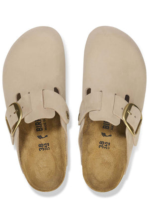 Bigger buckle, bolder Boston. We expanded our wildly popular Big Buckle collection to welcome our most iconic clog—the Boston. An oversized, gleaming buckle adds the perfect statement piece to the classically laid-back look. On a contoured footbed that'll feel uniquely yours wherever you wear it.