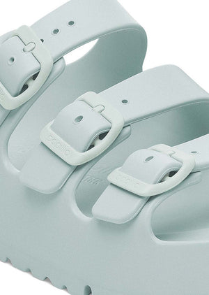 The BIRKENSTOCK Florida is the ideal sandal for anyone who spends a lot of time on their feet. This three-strap sandal offers good grip and maximum comfort. The new platform flex outsole has a wider heel section for increased stability and ideal weight distribution. The updated design with horizontal grooves in the front part improves flexibility and the rolling motion.