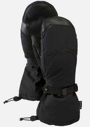 GORE-TEX Ski & Snowboard Winter Mittens. Insulated warmth, leather durability, and GORE-TEX grade waterproofing with an over-the-cuff gauntlet. Grabbing gear. Cranking buckles. Zipping zippers. The men's Burton GORE-TEX Deluxe Mittens double down on stormproof warmth and durability thanks to a liner glove and insulated GORE-TEX shell. These are the mittens for riders who just want one pair they can wear any day of the season. Leather palms add durability in high-wear zones, and an extended gauntlet seals out cold and snow.