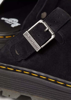 Le Zebzag Mule est notre dernière innovation dans le confort: construite sur une semelle hybride coussin d'air qui fusionne EVA de poids plume avec du PVC robuste. Fabriqués à partir de daim léger et polyvalent, ils sont conçus pour être portés comme vous vous sentez - en été ou en dehors de la saison conventionnelle. La sangle réglable assure un ajustement sécurisé, tandis que la construction soutenue offre notre durabilité signature. La couture de l'ouvrage jaune marque les mules comme le Dr Martens.