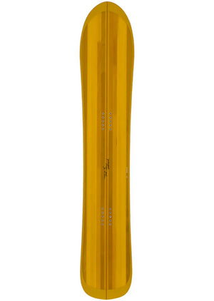 The GENTEMSTICK’s radical Accel camber eliminates hooking and prevents nosedives in deep powder or fresh snow, while maintaining a natural floatation. It is designed and shaped to perform its best when the rider stands neutrally on top of a board. It is made flat from the widest point of the nose side to about the front foot. The arch begins there and reaches the highest around the back foot, and it ends at the widest point of the tail side. When a rider stands on the board, the arch gets pushed and the area ahead of the front foot barely touches the snow.