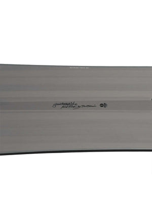 The GENTEMSTICK’s radical Accel camber eliminates hooking and prevents nosedives in deep powder or fresh snow, while maintaining a natural floatation. It is designed and shaped to perform its best when the rider stands neutrally on top of a board. It is made flat from the widest point of the nose side to about the front foot. The arch begins there and reaches the highest around the back foot, and it ends at the widest point of the tail side. When a rider stands on the board, the arch gets pushed and the area ahead of the front foot barely touches the snow.
