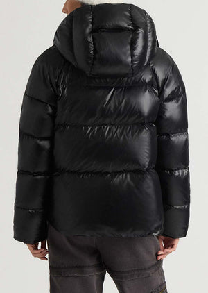 Calixa is a high-shine cropped down jacket with a relaxed fit and a fixed hood.