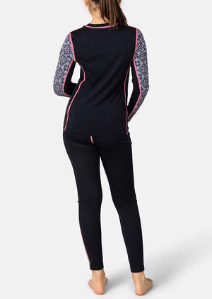 Rock the slopes or the streets in the Kari Traa Jr Hennie Set, blending soft, quick-drying comfort with a strong feminine spirit and eco-conscious materials. The Kari Traa Jr Hennie Set shares the Kari Traa strong feminine ethos with younger adventurers. These soft top and bottoms are warm, lay flat, and dry quickly, thanks to a Merino wool/Tencel blend. Made with sustainable, renewable materials.