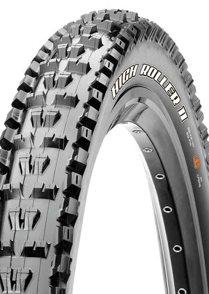 Le Maxxis High Roller II utilise une conception de bande de roulement ouverte et agressive destinée à trouver la traction dans des conditions meubles. Un grand canal entre les boutons centraux et les boutons latéraux offre une sensation plus lâche et dérivante souhaitée par certains cyclistes.