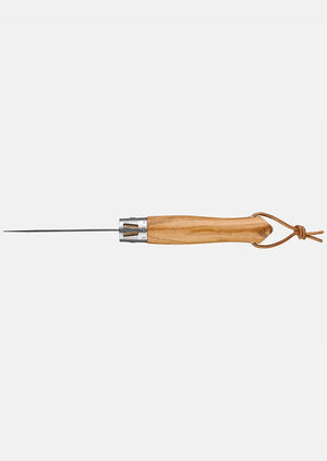 The natural leather lanyard on the handle's end means you can easily hang the knife up. The OPIFLEX® system makes the knife safe to use It ensures the blade stays open or closed without it locking.