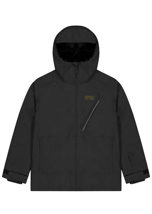 The functional features are numerous, including an ergonomic hood with a unique adjustment system, hand pockets, and a chest pocket, all with zippers under flaps for better water resistance. It also has underarm ventilation zips and an adjustable hem with a drawstring. The integrated snow skirt, ski pass pocket, and inner mesh pocket complete the model.