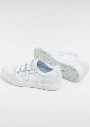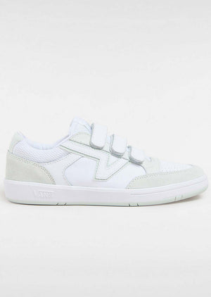 Un logo hors concours «Flying V» marque cette chaussure inspirée des années 80 sans lacement. Le Lowland Comfycush V est un archivisme des années 80 Vans Silhouette avec un profil mince, fermetures à crochet et boucle et une semelle extérieure en comfycush pour le confort modernisé. Conçu à l'origine pour le tennis au début des années 80 lorsque Vans Expérimentait des chaussures axées sur le sport, ce style bas grenait un look familier tout en ajoutant l'excitation de notre patrimoine "Flying V" Vans logo.