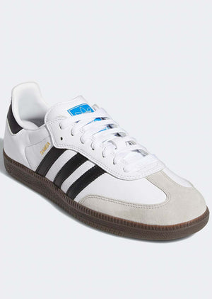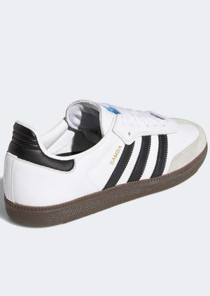 An indoor football staple, adapted for skateboarding by adidas. The Samba ADV shoes feature an upgraded T-toe design with two layers of reinforcement in high-abrasion areas and all-suede construction for the classic feel, flick and durability that's made the Samba an icon. Known for its locked-in fit, the Molded sockliner and signature tongue wings create a stabilizing fit, while the grippy cupsole ensures the feel and board control.