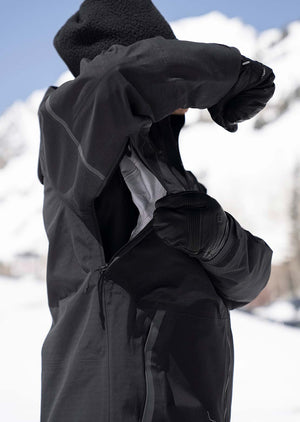 Stretch material next to skin to keep snow from sneaking in beyond the wrist.