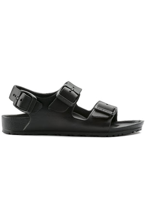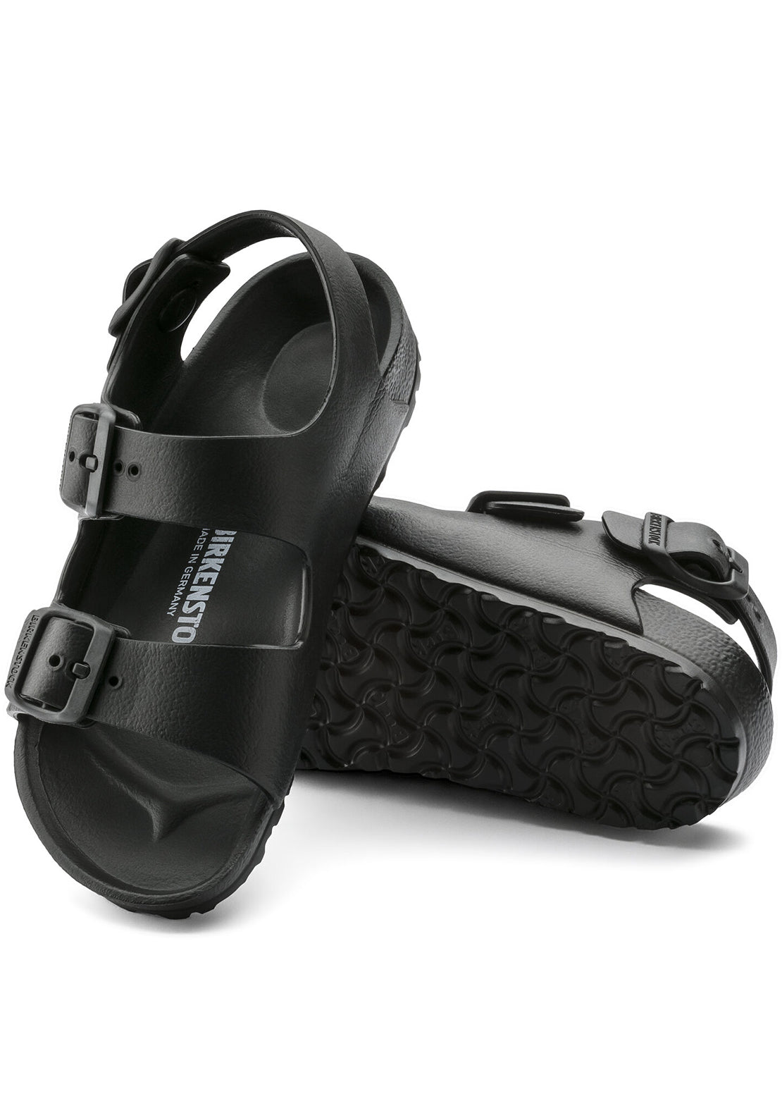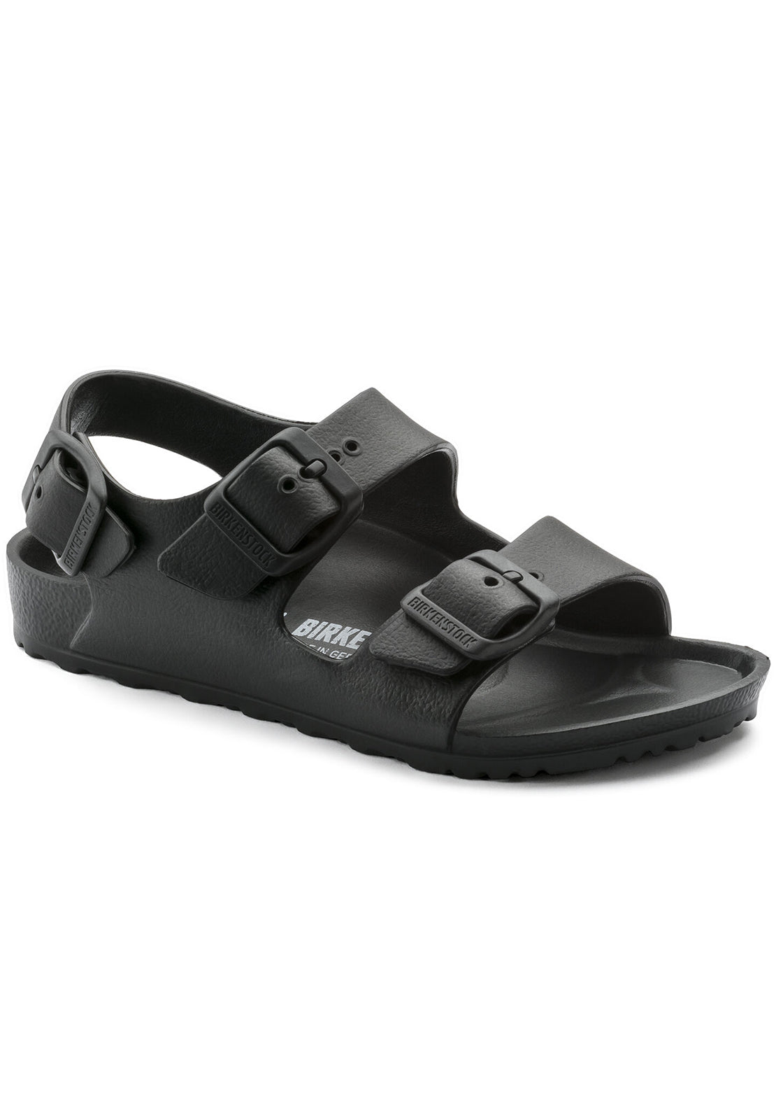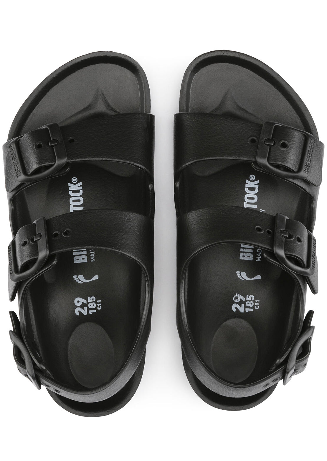 Maximum grip, stability, and a perfect fit! The BIRKENSTOCK Milano offers all of this thanks to its compact design with a backstrap. Modeled on the cork original, this sandal is made from ultra lightweight and highly flexible EVA. This high-quality, odor-neutral synthetic material which has been tested for harmful substances is shock-absorbent, waterproof, and skin-friendly. It is therefore perfect for wearing on the beach, in the garden, or in wellness and spa areas.