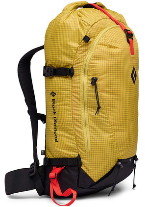 Both A-frame and diagonal ski carry systems make transitions seamless. A padded waistband adds extra cushion and stretch-woven padded shoulder straps allow for a comfortable carry. Quick-deploy PickPocket piolet carry system is compatible with piolets or tools and comes in handy during unexpected sections of steep terrain.