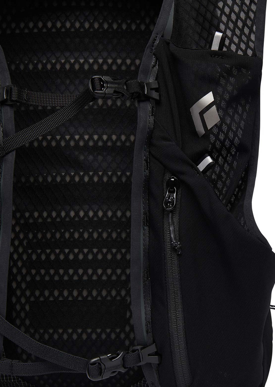 The pack is made with BD SETT (Stitchless Edge Taping Technology) that improves fit, comfort and durability on the move. The Distance 8 has an internal zip pocket, side stretch stash pockets, and a single zip pocket on the shoulder strap.