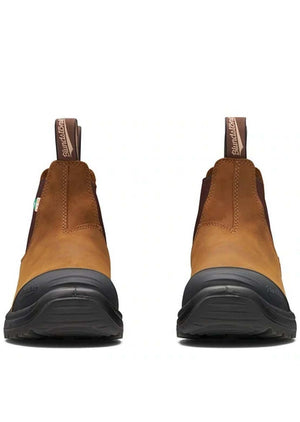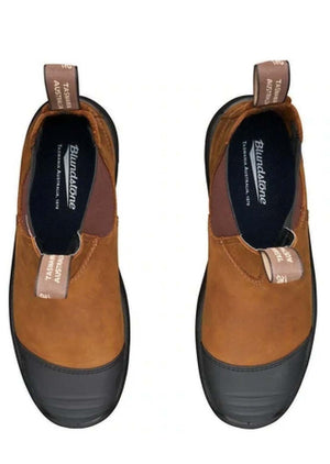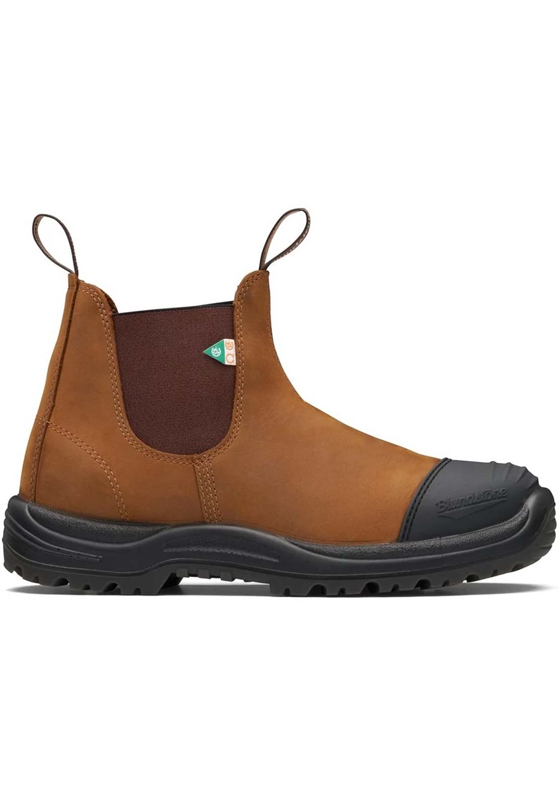 Our new work & safety boot with rubber toe cap keeps Blundstone boots on the job even longer. A steel toe protects your feet and now a rubber toe cap protects your boots. Multiple technical features protect feet from electrical shock, chemicals and workplace hazards. All-day comfort, dry feet, no laces in a boot so safe it even protects itself. CSA approved.