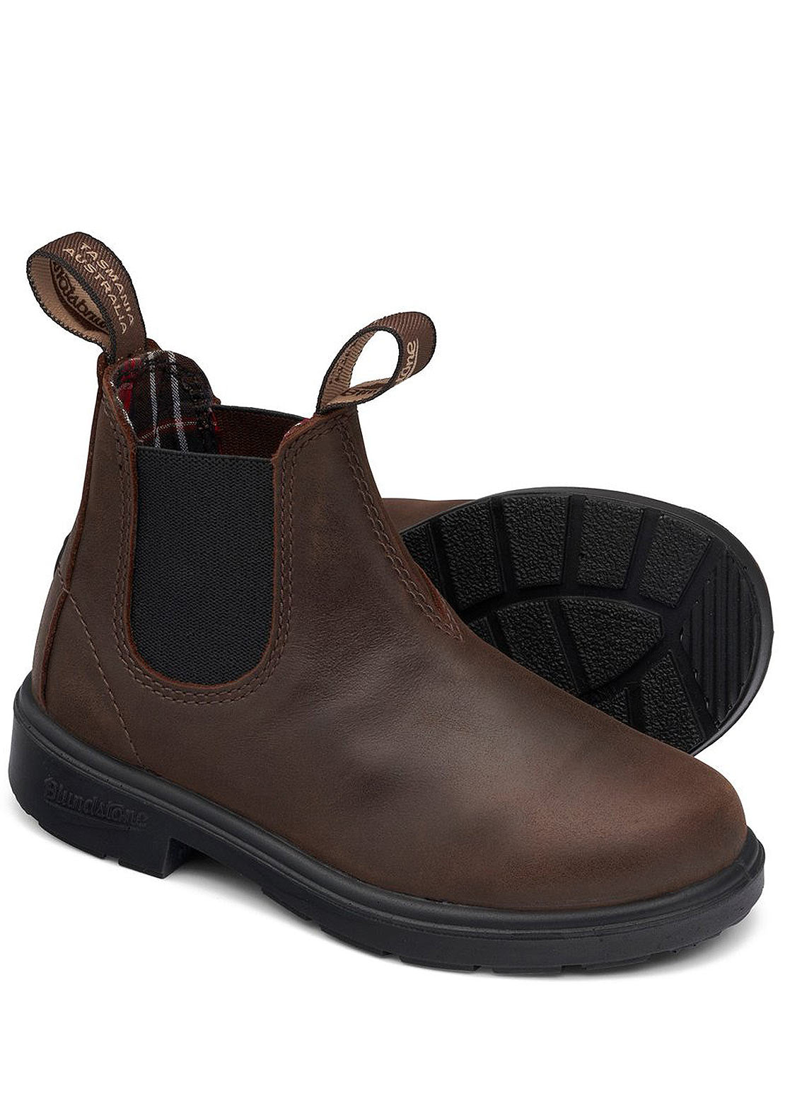 Blundstone 1468 Kids Chelsea in Antique Brown gives kids pull-on, kick-off freedom. Blundstone unisex sizing, comfort and long wear make these a favourite for mom and dad, too! Removable footbeds for months more wear.