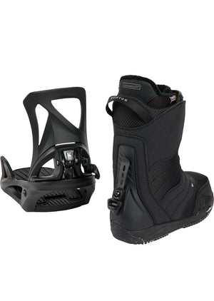 The easiest way to ride just got easier. The women's Burton Step On® boots and bindings package is the grab-and-go Step On set-up that will help you push your skills across the mountain or in the park. The Step On Re:Flex bindings are universally compatible, and the micro-adjustable precision fit with the BOA single dial configuration on the Mint Step On boots provides customizable comfort. For a simple and efficient way to start riding Step On, look no further than this boots and bindings combo.