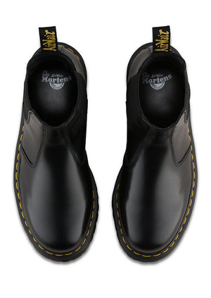 The first Dr. Martens Chelsea boot was produced in the 70s, but the actual style dates back to the Victorian era. Today, the 2976 Chelsea boot is a slick, uncompromisingly fashion-forward look for all genders — and with a sure fit and an easy-on, easy-off elasticized gusset, it's a versatile boot that works with everything. This season, the boot gets an empowering boost from an aggressive, 1.5" platform sole.