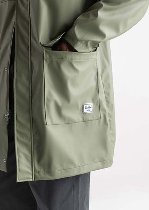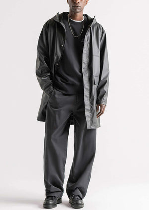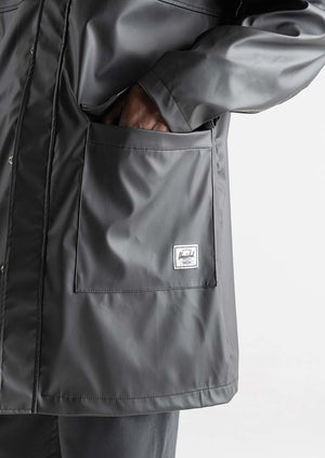 Stay outside longer. The Long Rain Jacket is made with a waterproof stretch fabric and a three piece hood for exploring in any weather.