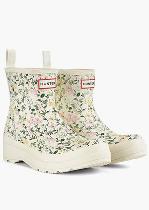 The Play Boot blends playfulness and practicality. A simplification of the iconic design of the Original Boot, the Play Boot quickly became a best-selling Hunter silhouette. Just grazing the top of the ankle, with a flatter platform sole for comfort, finished with a pull tab for easy foot entry. The design is crafted from the highest quality natural rubber, 100% recycled polyester lining and is 100% waterproof.