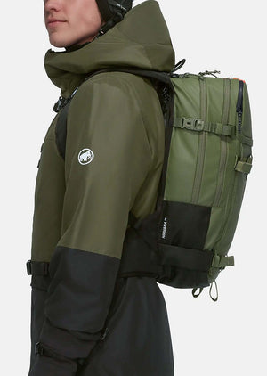 A separate avalanche equipment compartment ensures you are always prepared, while a dedicated internal sleeve makes the pack compatible with the Mammut Back Protector. Skis and splitboards can be attached diagonally or A-frame style. An optimized carrying system provides maximum comfort and freedom of movement. The specially selected fabrics, including the extremely robust outer, are PFC-free and made from recycled materials.