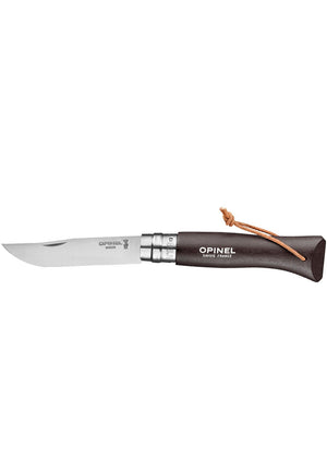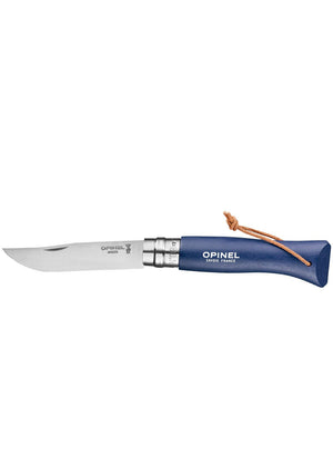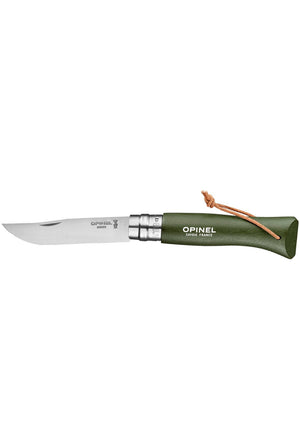 Add some color to your existing Opinel collection! The No.08 adventure knife will go anywhere you take it. The knife comes in a variety of colors and features a thin leather lanyard which will keep it securely fastened wherever you choose to hang it. Engrave your knife for an extra level of personality!
