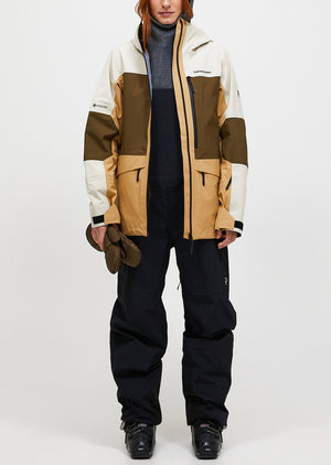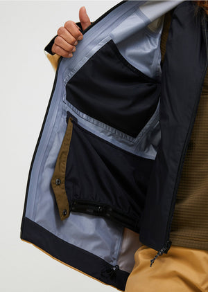 Relaxed fit ski shell for park, piste, or off-piste. Made of fully weatherproof, yet breathable, GORE-TEX ePE membrane. The new and improved Gravity jacket comes with extra everything for all your freeski needs. The fully seam-sealed GORE-TEX fabric is reliably wind- and waterproof while staying super breathable. Multiple zipped pockets keep your belongings safe, large, zipped vents keep you comfortable, and the 2-way adjustable hood fits perfectly with your ski helmet.