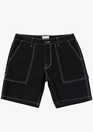 The Carpenter Canvas Shorts in black are designed for durability and comfort. Made from 100% cotton, these 13 oz canvas shorts feature a metal shank closure, metal zipper fly, and essential pockets including side hand and back patch pockets. With Rhythm trims and a 19-inch outseam, they’re ideal for those who value practicality and understated style.