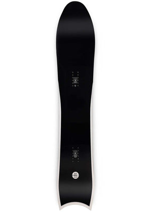 A twin sidecut which allows for the underfoot width of a wide board in the tip/tail width of a standard size. This design provides improved leverage on landings, grip through turns, and stability on flat base.