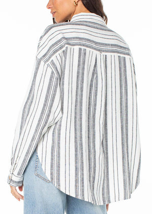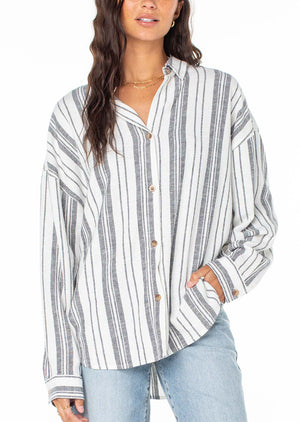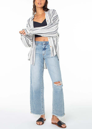 Relax all day long in the Morning Time button up. Crafted from a soft gauze, this versatile piece is easy to style over any top or flaunt on its own.