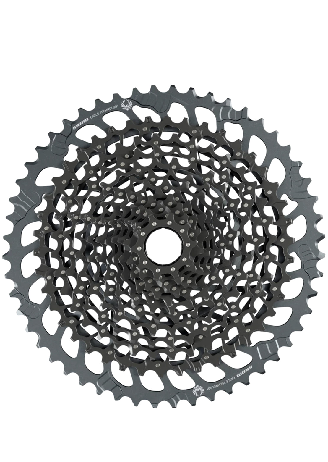 The new 10-52 Eagle cassette for riders who prioritize all day function over anything else. With an expanded, 520-percent gear range giving riders more ability to spin and recover on the burliest climbs. Featuring FULL PIN™ technology that uses lightweight, precision engineered steel cogs permanently connected with high-strength stainless steel pins. An open design similar to our X-DOME™ cassette that aids in mud clearance, giving riders crisp shifting performance and longer component life.