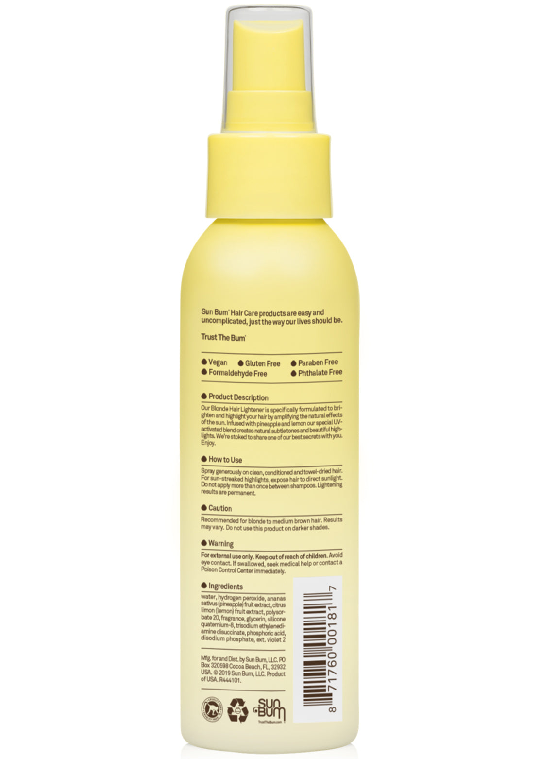 Our Hair Lightener is specifically formulated to intensify the natural highlighting effects of the sun, giving our locks that natural, sun-kissed look we love. This UV-activated formula sprays on sheer and uses naturally derived ingredients like Costa Rican pineapple and Meyer lemon to help create natural looking blonde highlights.