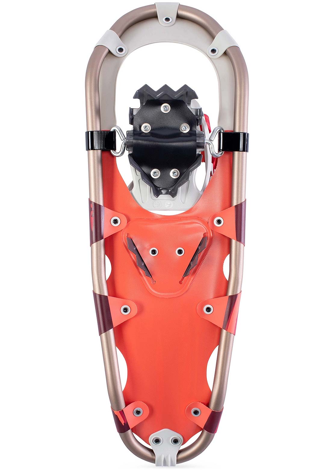 A truly classic snowshoe in every sense! The Frontier has been a staple of the Tubb’s Trail Walking category for years, and things are only getting better. This season brings a new look for the Frontier with eye-catching modern styling and colors (including a sleek, blacked-out version). The streamlined 180™ EZ binding makes entry and exit a breeze with a single buckle tightening mechanism, while Control Wings™ and a heel strap provide efficient, lightweight support. The minimalist design of the Frontier delivers efficient performance on packed trails thanks to the aluminum Fit-Step™ frame and SoftTec™ decking. Whether you’re a budding snowshoer or just looking to take on less intense trails and hikes, the Frontier has everything you need for your next winter excursion.