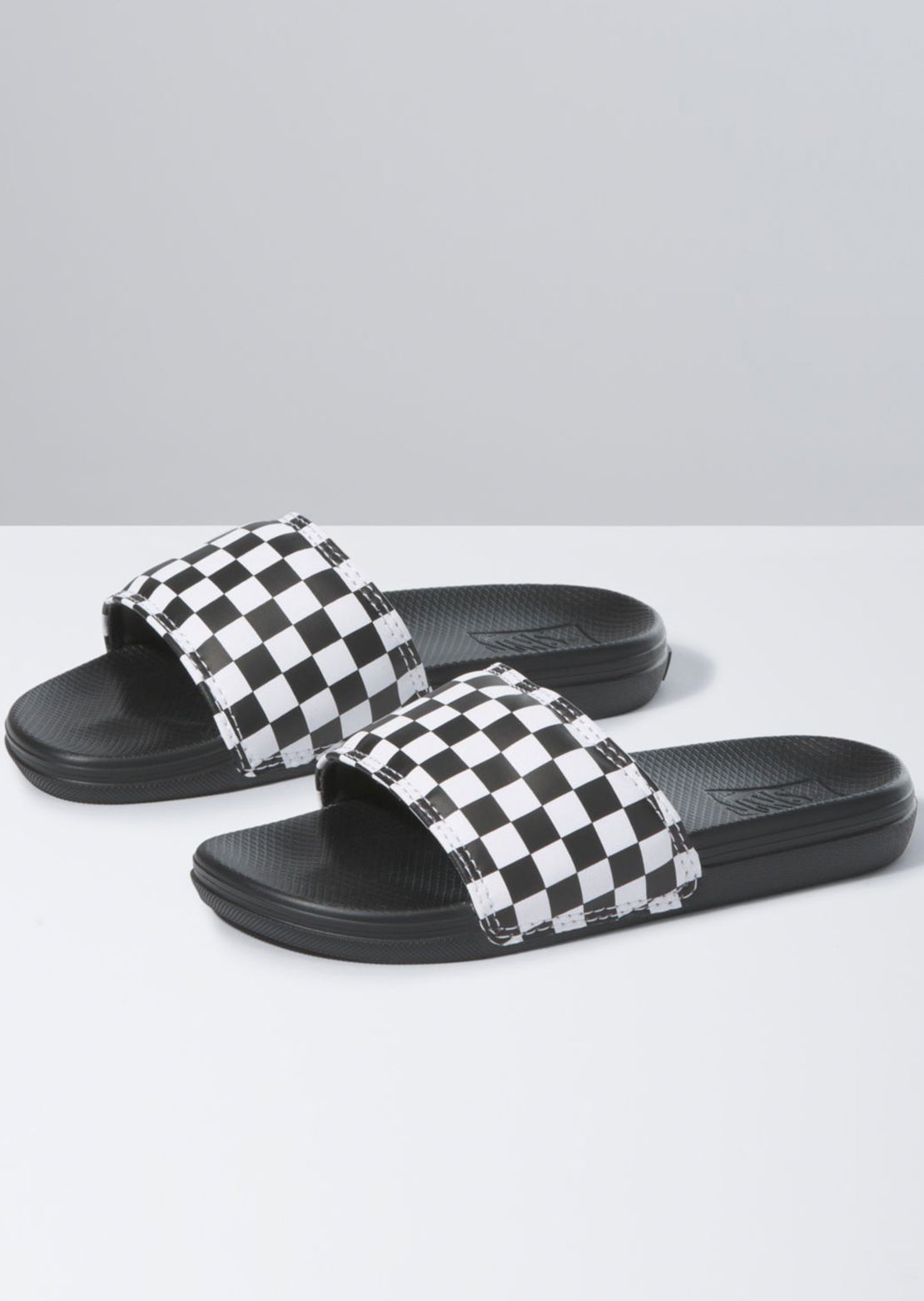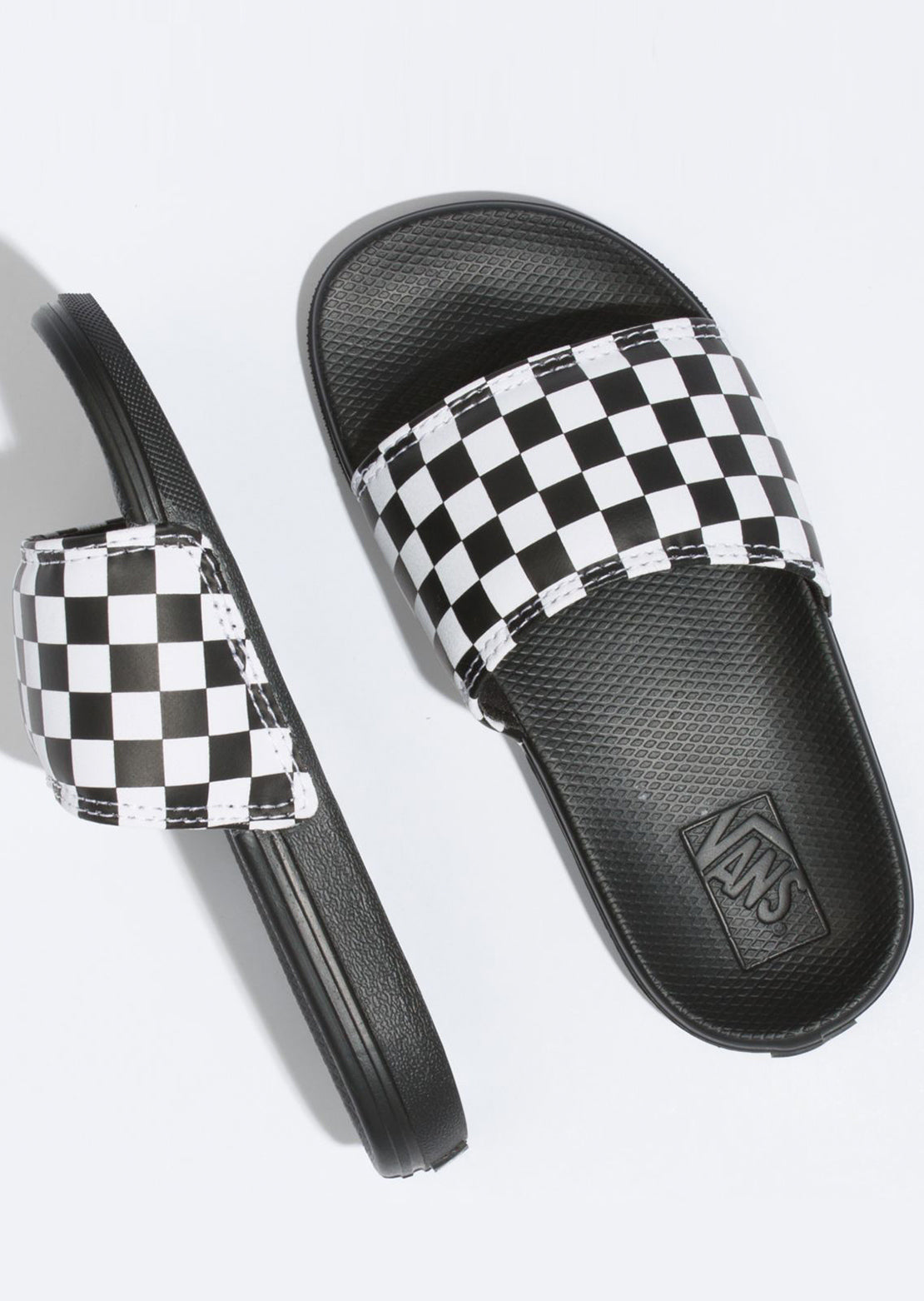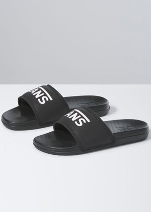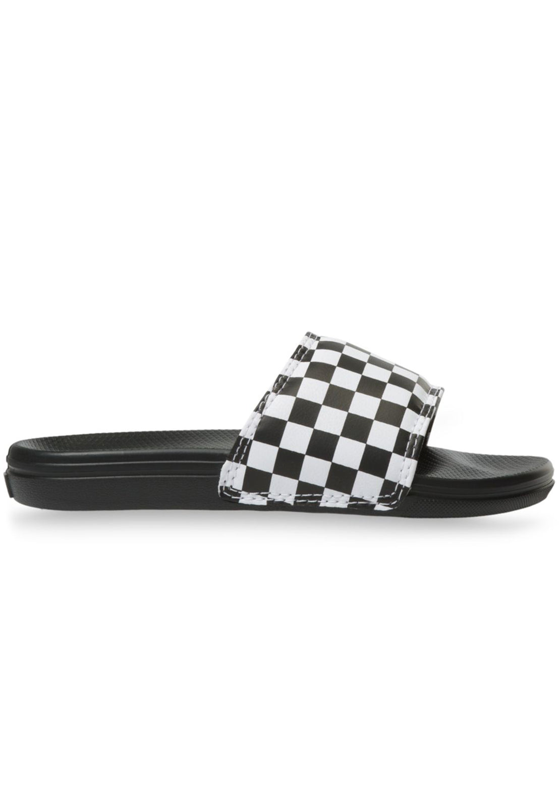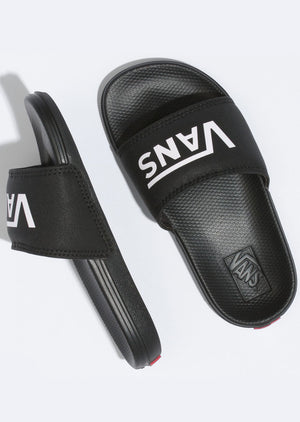 Inspired by Vans' classic vulcanized roots, the Kids Vans La Costa Slide-On is made with a synthetic nubuck strap featuring soft synthetic rubber and stretch textile lining for comfort. It also includes lightweight, flexible, and durable injected ULTRACUSH™ Lite waffle outsoles, water-based inks and glues, and a Vans logo.