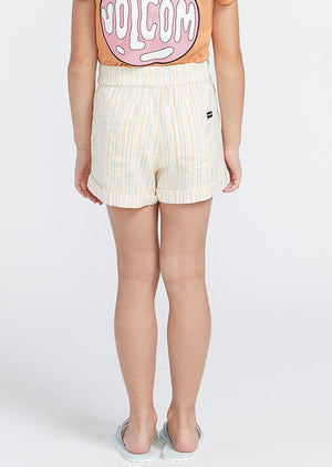 The Sunday Strut short is a relaxed rise short has an elastic waistband with a drawcord, plus rolled and tacked cuffs. These shorts are lightweight, breathable, comfortable, and of course cute.