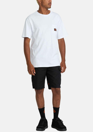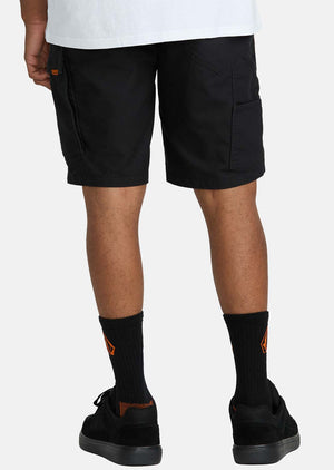 Rugged yet relaxed cotton-polyester-elastane utility shorts made for work but styled for play - cargo pockets, reinforced construction, and Volcom's trademark branding.