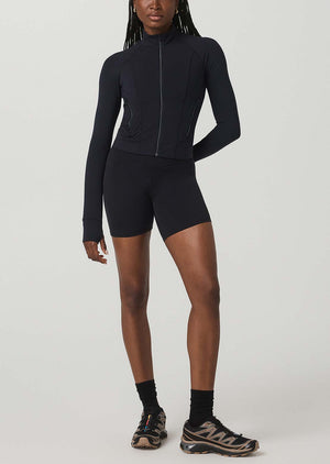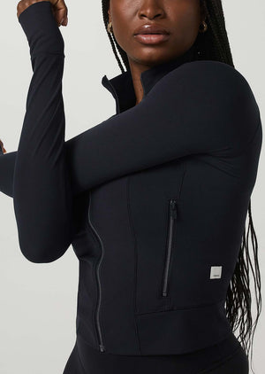 The buttery-soft Vuori BlissBlend Form™ layer your fitness routine has been waiting for. Our women's Vuori AllTheForm™ Fitness Jacket is an easy addition to your workout wardrobe, with flattering front and back seaming details. Zippered pockets let you stash your keys and cards for those post-run iced coffee stops.