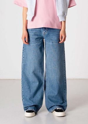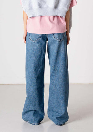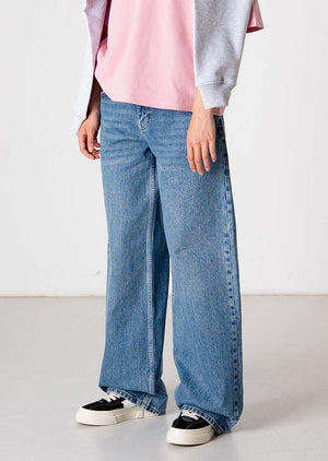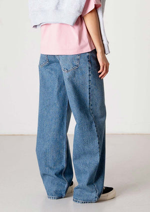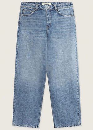 These jeans land somewhere between vintage denim and a relaxed modern fit. It's a low waist fit. Classic denim wash. Can't go wrong with that.